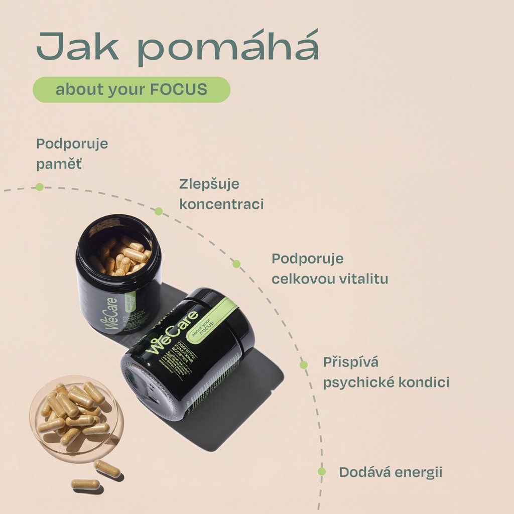 LEPŠÍ SOUSTŘEDĚNÍNaším cílem bylo vytvořit komplexní řešení pro moderního člověka, který se potřebuje naplno soustředit, ať už při práci, studiu nebo při řešení každodenních úkolů. About your FOCUS je vhodný pro období, kdy chcete podpořit soustředění a pocit mentální svěžesti. Dopřejte tento benefit své každodenní mentální rutině v osobním i profesním životě. Podporuje psychickou činnost a normální činnost nervové soustavyBacopa monnieri, ženšen pravý a ginkgo biloba pro podporu kognitivních funkcí při mentální zátěži. Napomáhá k fyzické i duševní vitalitěRozchodnice růžová a zelený čaj pro osvěžení těla a ideální fyzickou a duševní vitalitu. Obsahuje přírodní adaptogeny a pomáhá čelit stresuAshwagandha, ženšen pravý a bacopa monnieri pro duševní rovnováhu a adaptaci na zátěž. |